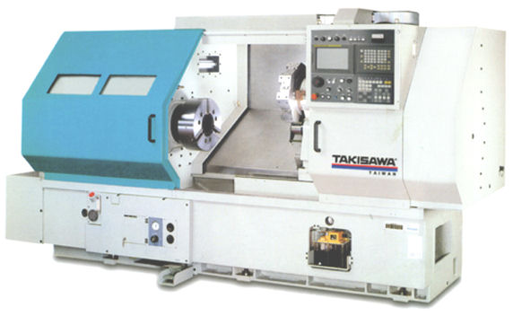 The Takisawa TW-46 is a powerful heavy duty CNC lathe with a large-bore chuck.